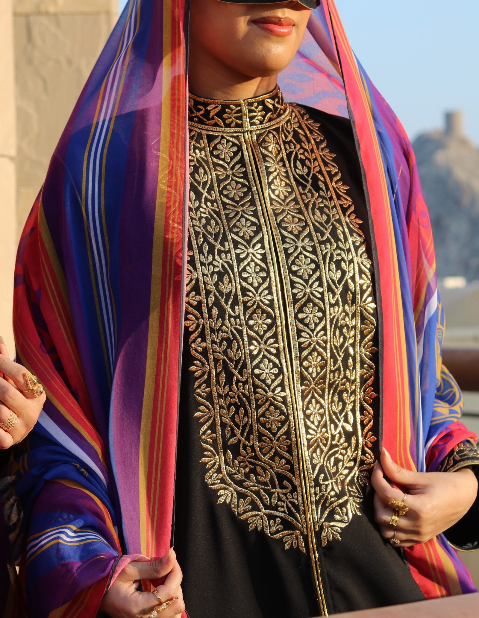 ثوب مستوحى من تصميم الدقلة السلطانية، مزدان بخيوط ذهبية دقيقة تزيّن الأكمام والصدر، ليعكس فخامة التفاصيل وأصالة التراث بروح عصرية راقية، للتفصيل التواصل على رقم الواتساب