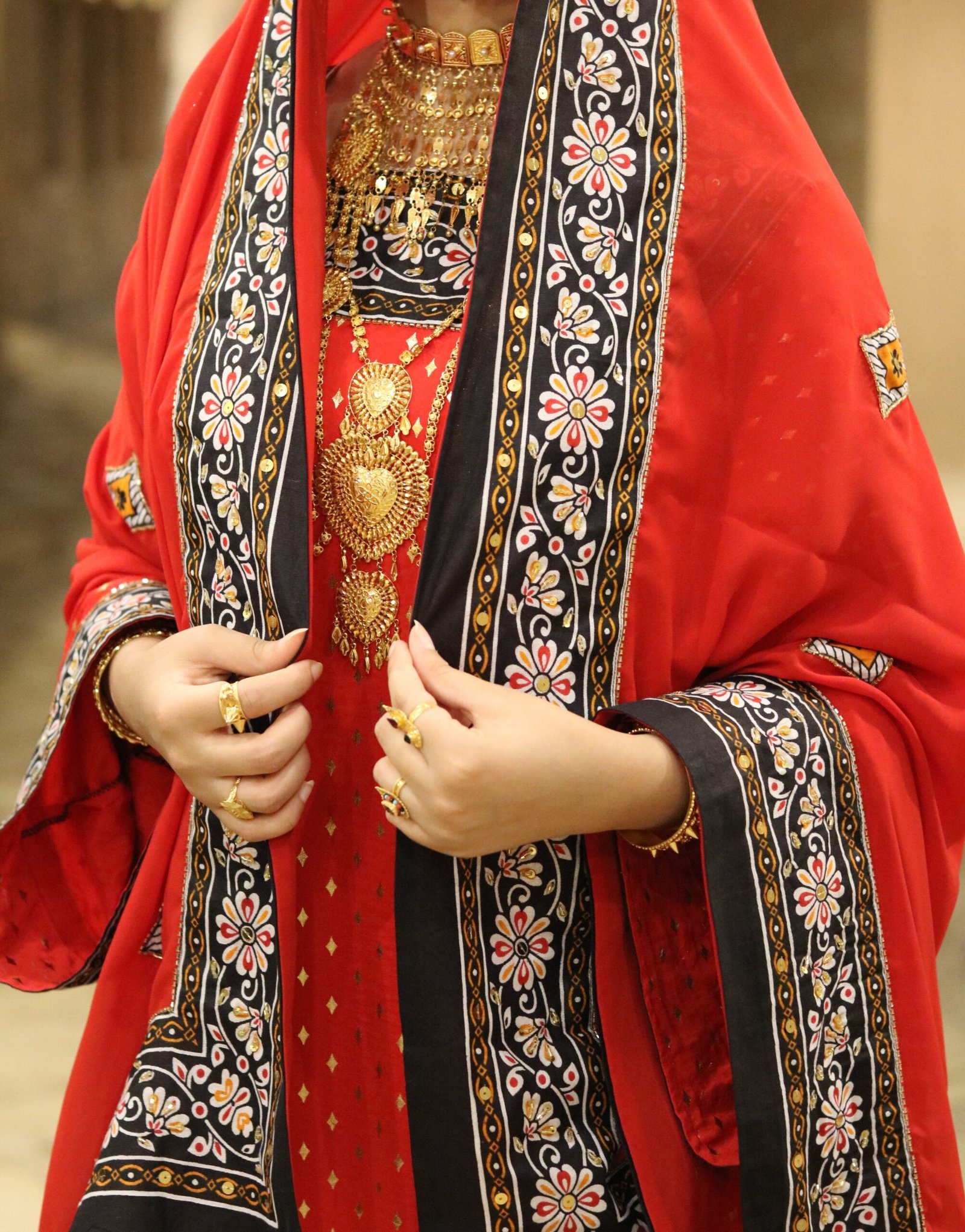 | ثوب فاخر مطرز يدوياً على الأكمام والصدر، مع شال مُزين بالخرز والفولق الذهبي لإطلالة راقية ومتلألئة، بمكنك تغيير لون القماش على حسب اختيارك، للتفصيل والطلبات الخاصة، يُرجى التواصل عبر رقم الواتساب |