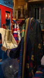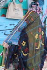 تصميم الشال مستلهمًا من نقشة بوطيرة المتجذّرة في الأزياء التقليدية والحِرف اليدوية، وممزوجًا بتناغم فني مع نقوش الفناجين التراثية، ليعكس روح الأصالة بلمسة معاصرة والحصري لعلامتنا التجارية