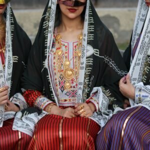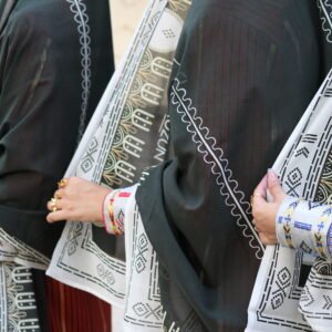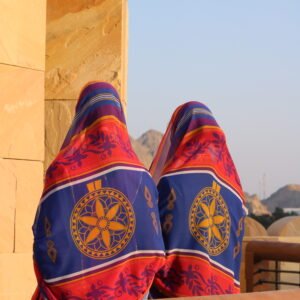 مستوحى من لوحة الطاووس التقليدية، وممزوج بتناغم فني مع نقوش الدوشك التراثية (المراتب الأرضية)، ليعكس جمال الموروث بأسلوب معاصر أنيق، تصميم حصري لعلامتنا التجارية